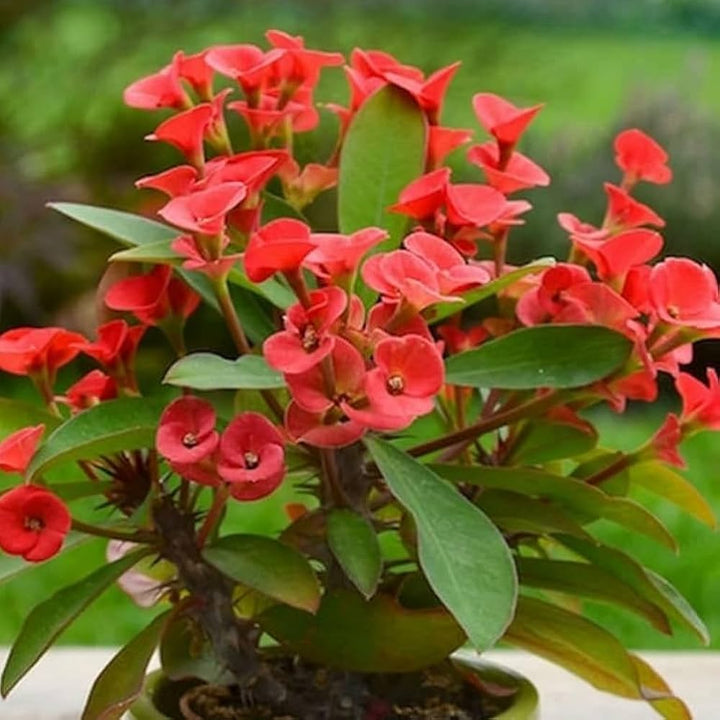 Plant Euphorbia Milii Flower Seeds Deep Red for Planting in fertile, well-draining soil. Choose a sunny or partially shaded area depending on the plant's needs. Water adequately, ensuring not to overwater. Suitable for resilient gardening, adapting to environmental changes.